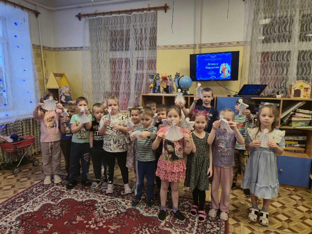 В рамках кружковой работы «Добрый Мир» с воспитанниками старшей группы была проведена беседа на тему: «Рождество Христово». Целью которой стало создание условий для духовно-нравственного развития и воспитания детей посредством приобщения к традиционным духовным ценностям.