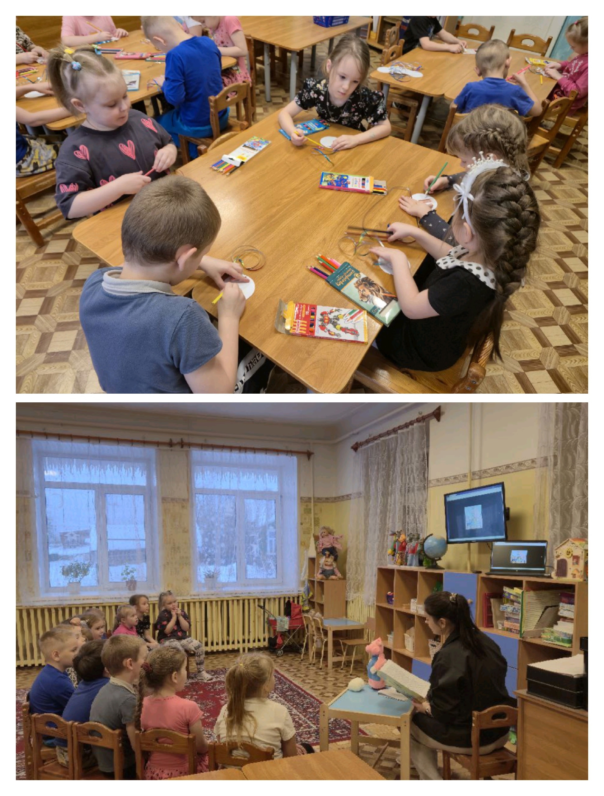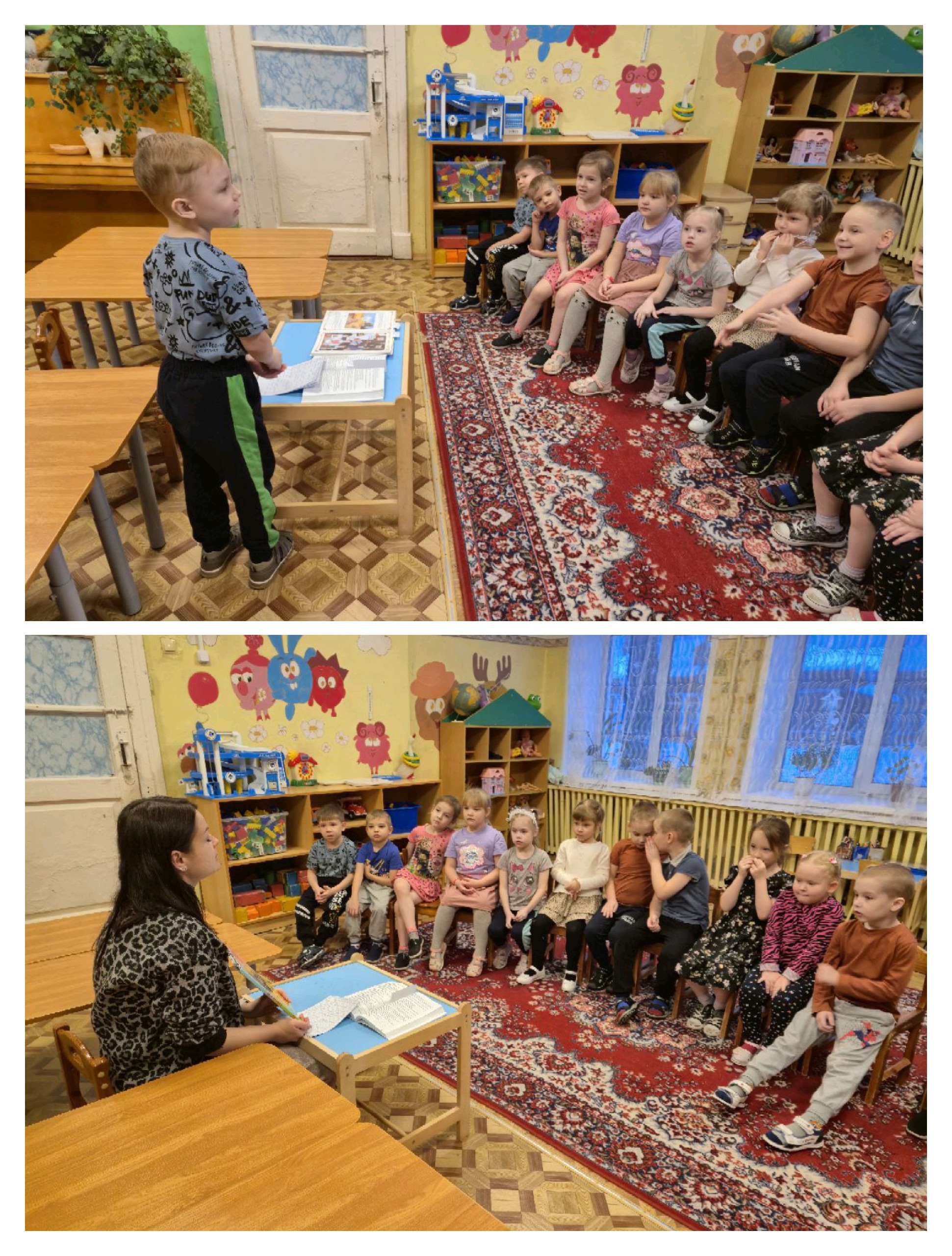 На этой неделе детям воспитатели читали русскую народную сказку «Теремок», стихотворение Е.А. Благининой «Посидим в тишине», детям старшего возраста рассказы Е. Г. Каргановой «Чуня», И. Гамазковой «Волшебная семья».