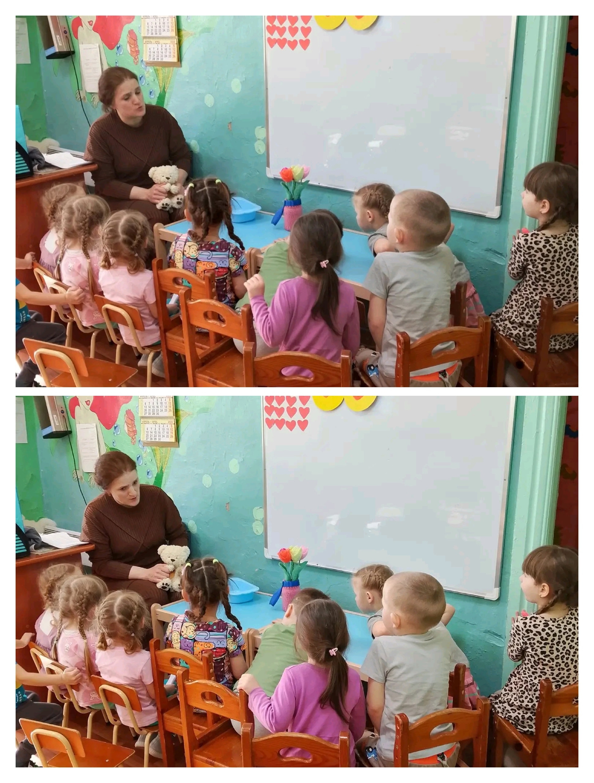 В младшей группе ребята познакомились с историей Анатолия Митяева «За что я люблю маму».